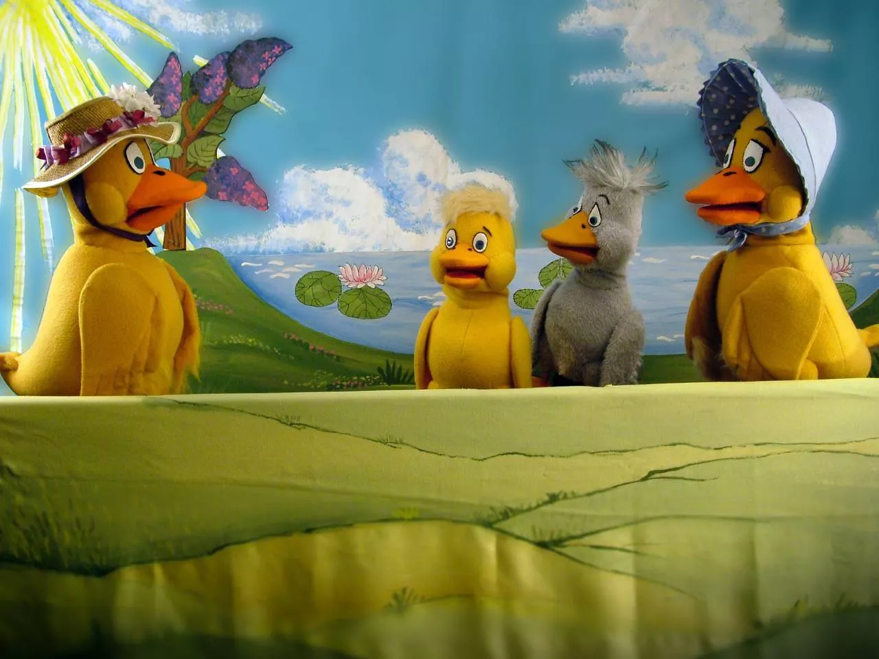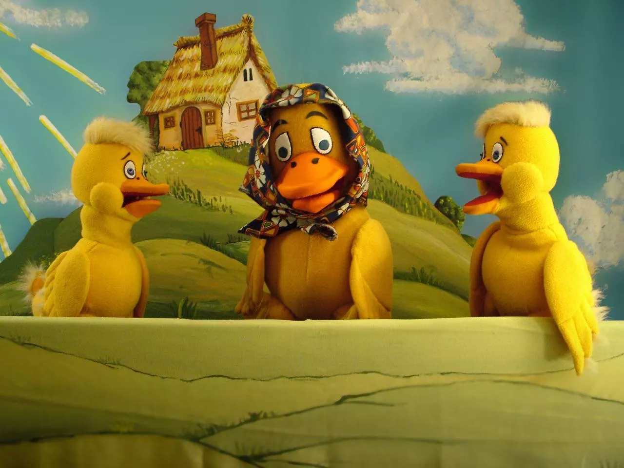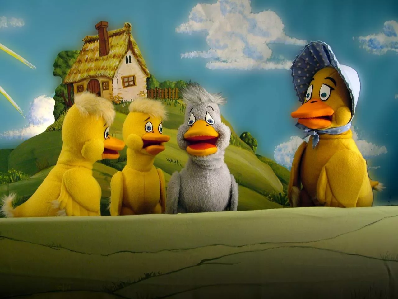 Rút kiskacsa, Macsek, Kacsamama, Kacsanéne, Blöki, kiskacsák, tyúkok, Róka, Hattyú